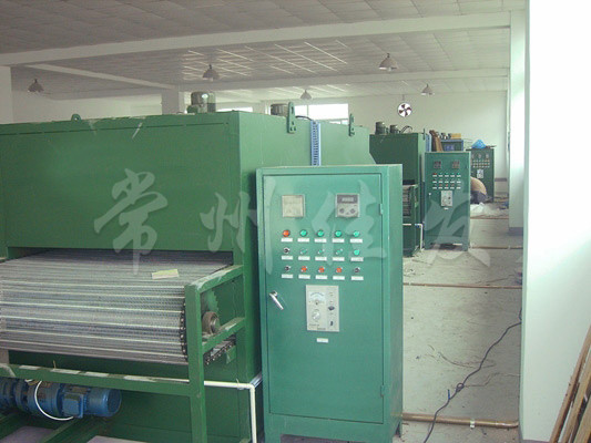 物料由加料器均勻地鋪在網(wǎng)帶上,網(wǎng)帶一般采用12-60目不銹鋼絲網(wǎng),由傳動裝置拖動在干燥機內(nèi)移動。干燥機由若干單元組成,每一單元熱風獨立循環(huán),部分尾氣由專門濕風機排出,廢氣由調(diào)節(jié)閥控制,熱氣由下往上或由上往下穿過鋪滿物料的網(wǎng)帶完成熱量與質(zhì)量傳遞的進程,帶走物料的水份。網(wǎng)帶緩慢移動,運行速度可根據(jù)物料溫度自動調(diào)節(jié),干燥后的成品連續(xù)落入收料器中。上下循環(huán)單元根據(jù)用戶需要可靈活配備,單元數(shù)量亦可根據(jù)需要選取。