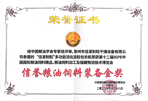 信譽(yù)糧油飼料裝備金獎(jiǎng)